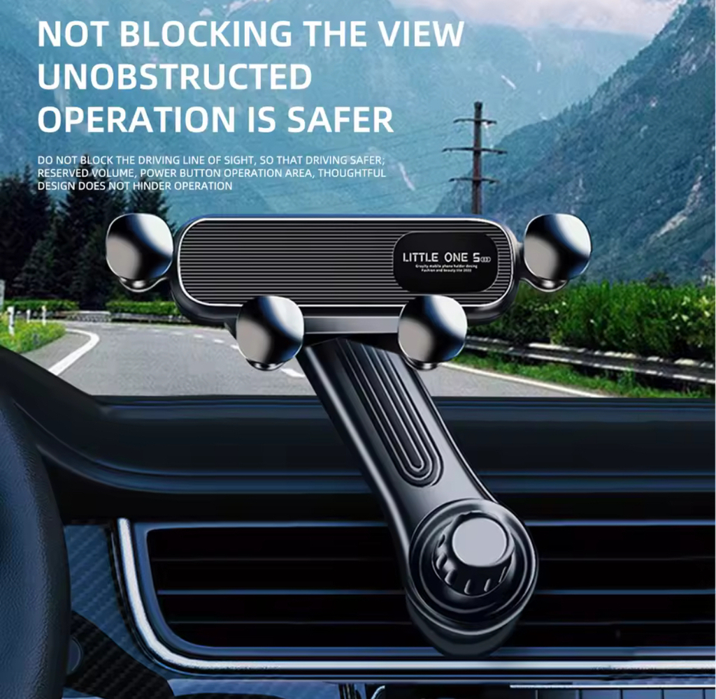 Este soporte de celular para auto es ideal para mantener el teléfono fijo, visible y accesible mientras manejás. Se instala fácilmente en la rejilla de ventilación del vehículo y funciona mediante un sistema de gravedad inteligente, que sujeta el teléfono automáticamente con su propio peso.